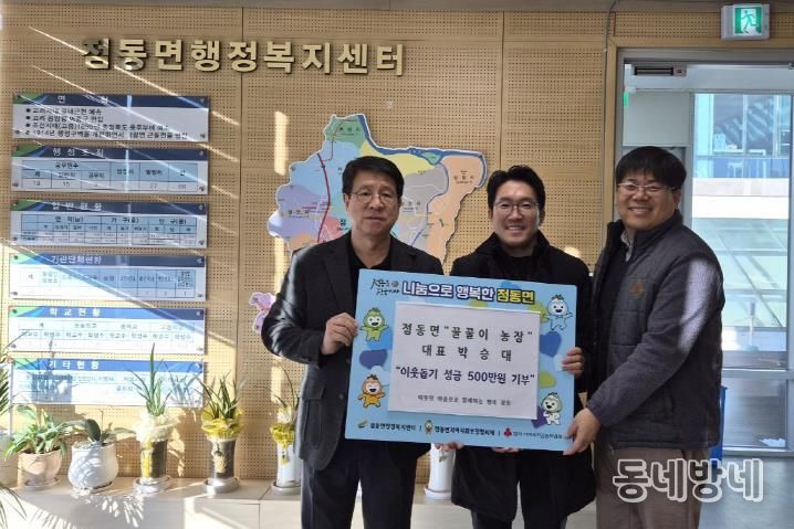 동네방네 김형규 기자 | 점동면 관내 꿀꿀이 농장 박승대 대표가 지난 12월 22일, 연말을 맞아 이웃사랑 성금 500만원을 경기사회복지공동모금회를 통해 점동면 지정기탁으로 점동면행정복지센터에 전달하며 지역사회에 따뜻한 감동을 전했다.