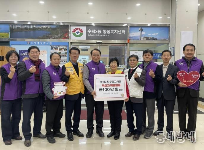 동네방네 김형규 기자 | 구리시 수택3동 주민자치회는 지난 12월 22일 지역 내 어려운 이웃을 지원하기 위해 적십자 특별회비 100만 원을 대한적십자사에 전달했다.