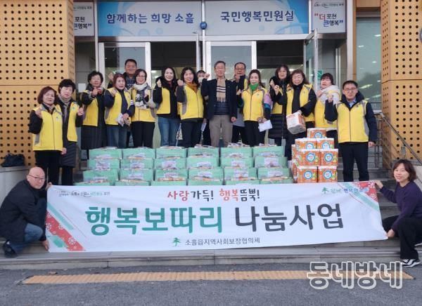 동네방네 김형규 기자 | 포천시 소흘읍 행정복지센터는 지난 22일 소흘읍지역사회보장협의체가 1인 가구 어르신 결연세대 등 저소득 38가구를 대상으로 ‘행복보따리 나눔사업’을 추진했다고 밝혔다.