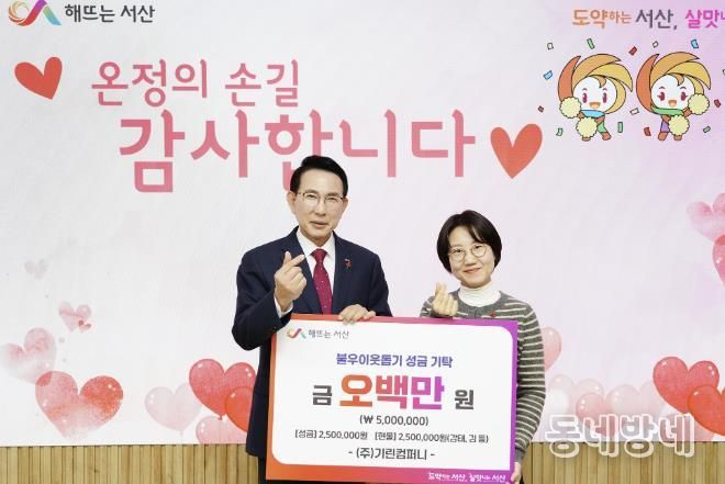 동네방네 김형규 기자 | 충남 서산시는 지난 23일 ㈜기린컴퍼니가 불우이웃돕기 성금 및 현물을 기탁했다고 밝혔다.