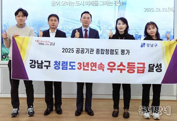 동네방네 김형규 기자 | 꿈이 모이는 도시, 미래를 그리는 강남구가 국민권익위원회가 주관한 ‘2025년 공공기관 청렴도 평가’에서 3년 연속 ‘종합청렴도 우수등급’을 받았다.