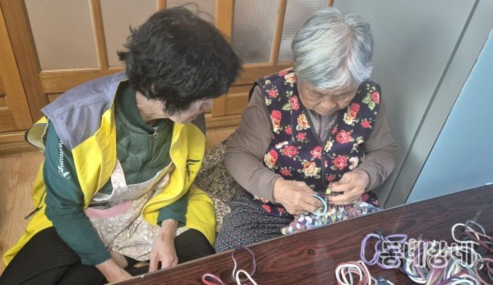 동네방네 김형규 기자 | 부여군남면 자원봉사거점캠프는 대선리 마을회관에서 지역 어르신 20여 명과 함께 '탄소중립 양말목 발매트 만들기' 프로그램을 진행했다고 31일 밝혔다.