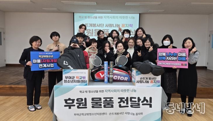 부여군학교밖청소년지원센터 관계자는 “지역사회의 따뜻한 나눔이 학교 밖 청소년의 일상과 성장으로 이어지고 있다.”라며, “앞으로도 지역사회 자원 연계를 통해 지속 가능한 협력 모델을 확대해 나가겠다.”라고 밝혔다.