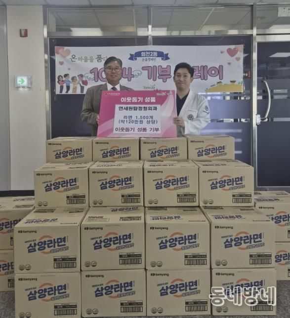 동네방네 김형규 기자 | 양주시 회천2동 연세원탑정형외과가 지난 21일 회천2동 행정복지센터에 라면 1,500개(약 120만 원 상당)를 기부했다.