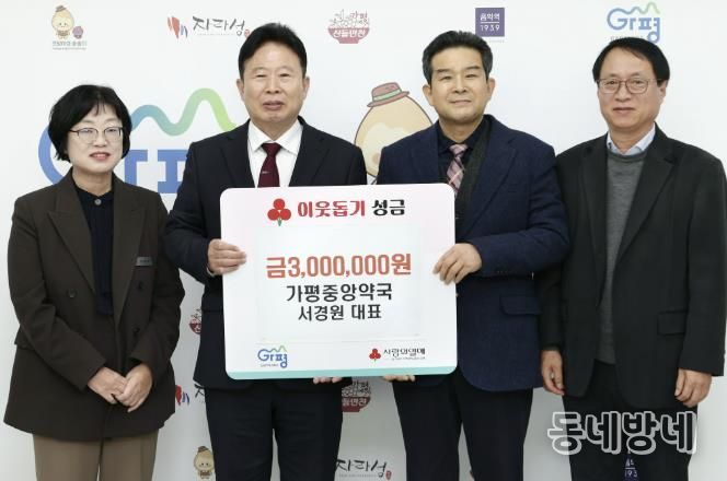 동네방네 김형규 기자 | 가평중앙약국 서경원 대표는 21일 이웃돕기 성금 300만원을 가평군에 기탁하며 지역사회 나눔 실천에 동참했다.