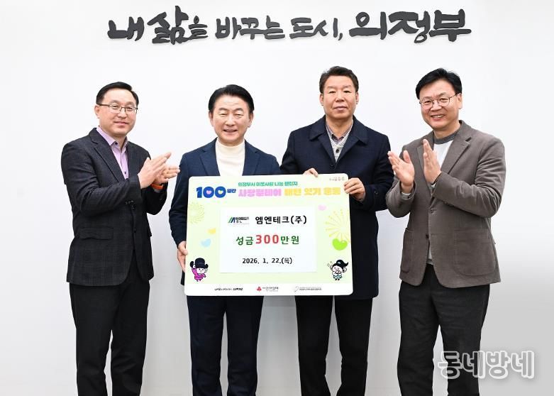 동네방네 김형규 기자 | 의정부시는 1월 22일 엠엔테크(주)가 관내 저소득층을 위해 성금 300만 원을 기부했다고 밝혔다.
