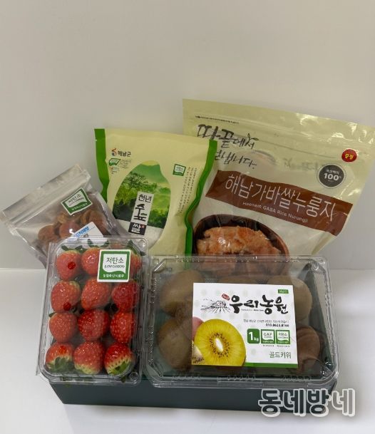 꾸러미는 해남에서 생산된 찹쌀과 참다래, 딸기, 감말랭이 등 총 4종의 저탄소 인증 농산물로 구성됐으며, 저탄소 인증쌀로 만든 누룽지도 구매 사은품으로 제공한다.