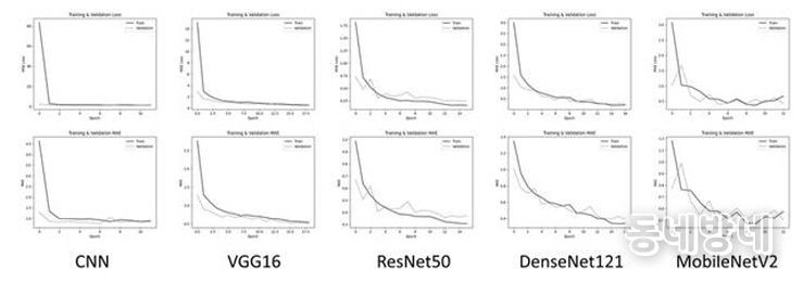 이를 위해 이미지 학습에 널리 활용되는 합성곱신경망(CNN) 기본 모델과 함께, VGG16, ResNet50, DenseNet121, MobileNetV2 등 CNN 기반 전이학습 모델을 적용해 예측 성능을 비교·분석했다.