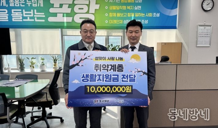 동네방네 김형규 기자 | 포항시는 2일 동국제강이 설 명절을 맞아 지역 소외계층을 지원하기 위해 포항사랑상품권 1,000매(1,000만 원 상당)를 기탁했다고 밝혔다.