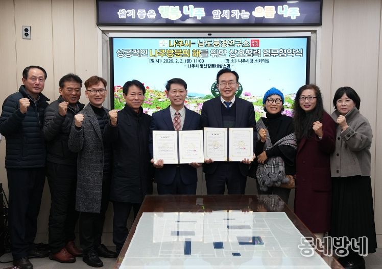 나주시는 2일 시청 소회의실에서 남도풍경연구소와 나주시 관광자원의 기록·확산 및 ‘2026 나주방문의 해’ 성공 추진을 위한 업무협약을 체결했다고 밝혔다.