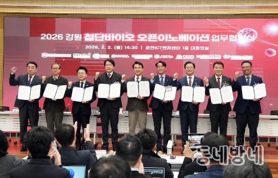 동네방네 김형규 기자 | 홍천군은 2월 2일, 강원특별자치도, 춘천시와 함께 춘천 ICT벤처 센터에서 「강원 첨단 바이오 오픈 이노베이션 프로그램」 업무협약식과 사업설명회를 개최하고, 올해부터 사업을 본격 확대 추진한다고 밝혔다.