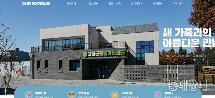 동네방네 김형규 기자 | 고성군은 반려동물 복지 증진과 유기동물 입양 활성화를 위해 고성군 동물가족센터 공식 홈페이지를 새롭게 개설하고 이달부터 본격 운영한다고 밝혔다.