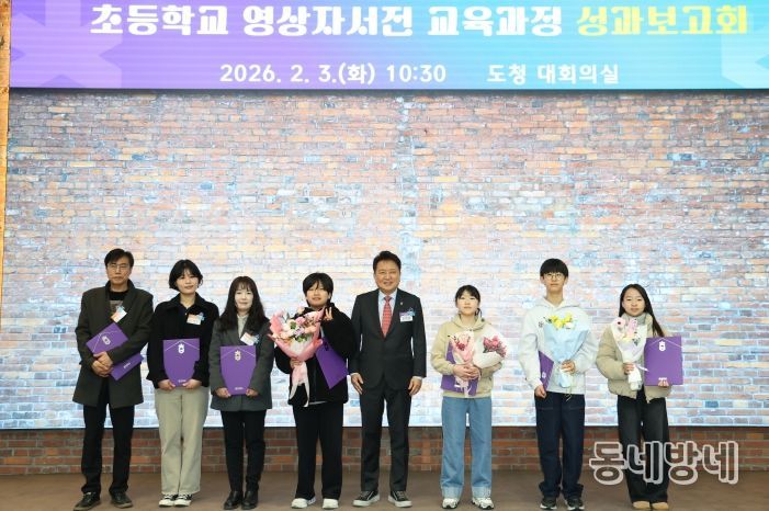 동네방네 김형규 기자 | 충북도는 3일 도청 대회의실에서 김영환 지사를 비롯해 교육과정에 참여한 학생, 학부모, 교사 등 40명이 참석한 가운데 ‘초등학교 영상자서전 교육과정 성과보고회’를 개최했다.