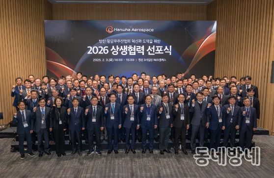 동네방네 김형규 기자 | 창원특례시는 2월 3일 한화에어로스페이스가 창원3사업장에서 개최한 ‘협력사 상생협력 선포식’을 환영한다고 밝혔다. 이번 선포식에는 손재일 한화에어로스페이스 대표이사와 상생협력 협의회 회원사, 김경수 지방시대위원회 위원장을 비롯한 정부 주요 인사, 김종양·허성무 국회의원, 경남도, 창원시 관계자가 참석해 지역 및 방위산업 발전을 위한 협력의지를 공유했다.