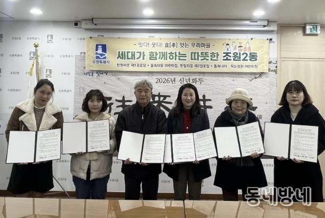 동네방네 김형규 기자 | 수원시 장안구 조원2동은 지난 3일, 행정복지센터 2층 소회의실에서 세대 간 교류 활성화 및 공동체 의식 함양을 위한 경로당–어린이집 결연식을 개최했다.
