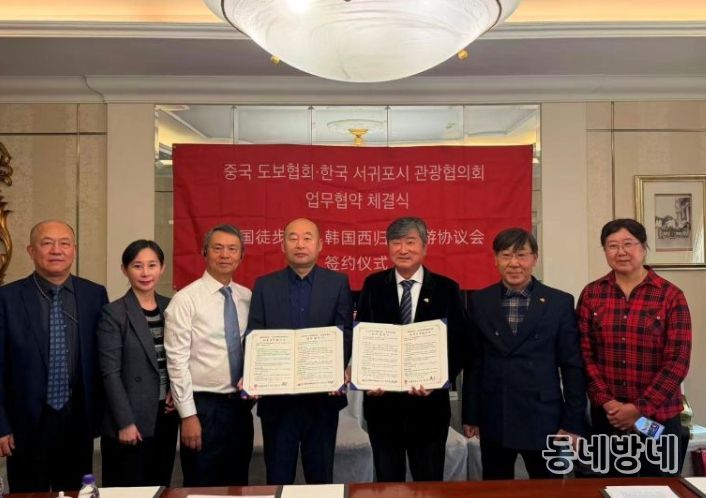 동네방네 김형규 기자 | (사)서귀포시관광협의회는 중국걷기협회와 3일, 북경 베이징 구루 접견실에서 양 기관이 주관하는 유채꽃 국제걷기대회와 북경 걷기대회를 성공적으로 추진하기 위해 업무협약을 체결했다고 밝혔다.