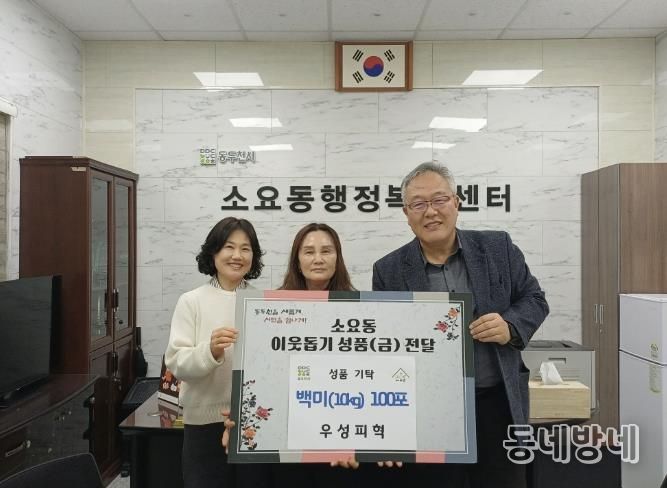 김승호 소요동장은 “어려운 이웃을 위해 한결같이 따뜻한 나눔을 실천해 주신 우성피혁 정소현 대표님께 깊이 감사드린다”라고 말했다.