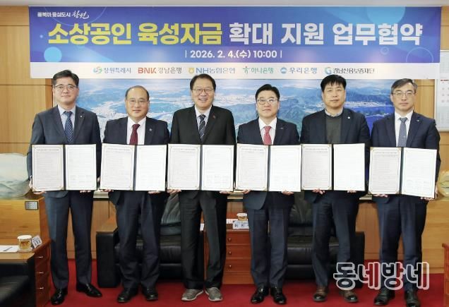 시는 2월 4일 창원시청 접견실에서 BNK경남은행, NH농협은행, 하나은행, 우리은행, 경남신용보증재단과 업무협약을 체결하고, 소상공인 금융 지원 확대를 위한 상생 협력에 나섰다.