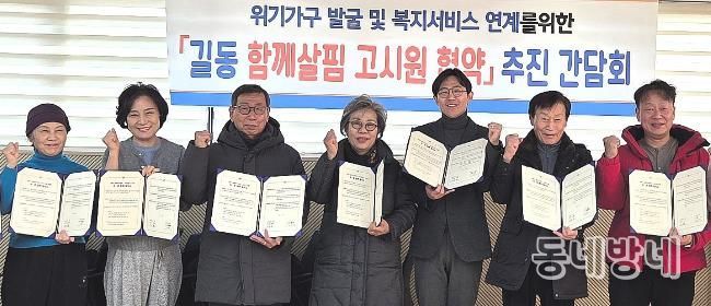 동네방네 김형규 기자 | 서울 강동구 길동주민센터는 지난 1월 23일, 관내 고시원 10개소와 ‘길동 함께살핌 고시원 협약’을 체결하고, 고시원에 거주하는 도움이 필요한 1인 가구를 조기에 발굴해 지원하는 체계를 마련했다고 5일 밝혔다. 길동주민센터는 이번 협약을 통해 민관 협력을 강화하며 복지 사각지대 해소에 적극 나서고 있다.