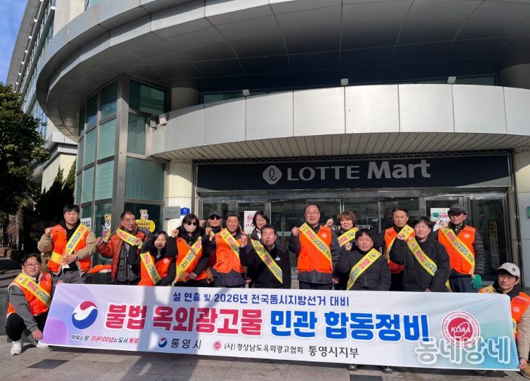 동네방네 김형규 기자 | 통영시는 설 연휴를 맞아 고향을 찾는 귀성객과 관광객들에게 쾌적하고 안전한 거리 환경을 제공하기 위해 지난 4일 경상남도 옥외광고협회 통영시지부와 함께 불법 옥외광고물 일제 정비 활동과 근절 캠페인을 실시했다.