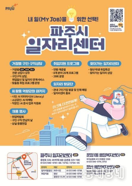동네방네 김형규 기자 | 파주시 일자리센터는 경기 둔화와 고용 불확실성이 지속되는 가운데 시민의 안정적인 취업과 지역 고용 기반 강화를 위해 녪년 사업 운영계획’을 수립하고, 시민 중심의 종합형 취업지원 서비스를 본격 추진한다.