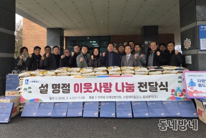 동네방네 김형규 기자 | 수원시 장안구 연무동 행정복지센터는 지난 4일, 설 명절을 맞아 관내 어려운 이웃을 위한 나눔 전달식을 개최했다.