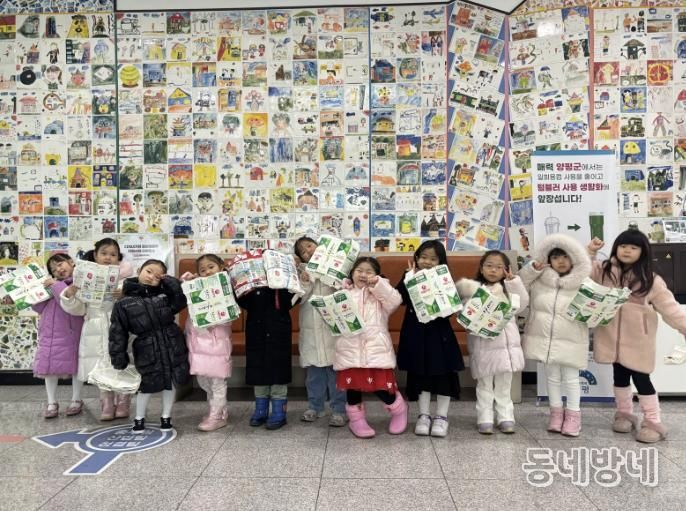 동네방네 김형규 기자 | 양평군 양평읍은 지난 4일 오전 10시, 양평읍 소재 동산유치원 원생들이 직접 모은 우유팩 약 4kg과 폐건전지 약 5kg을 양평읍사무소에 전달하며 자원순환의 중요성을 배우는 뜻깊은 시간을 가졌다고 밝혔다.