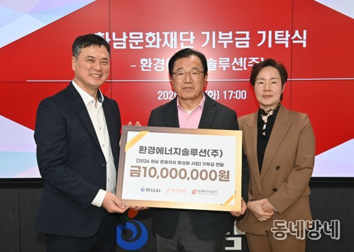 동네방네 김형규 기자 | (재)하남문화재단은 2월 4일, 하남시청에서 환경에너지솔루션㈜으로부터 문화자치 활성화를 위한 기부금 1천만 원을 전달받았다고 밝혔다. 이날 기부식에는 이현재 하남시장을 비롯해 기업 및 재단 관계자들이 참석해 지역 상생과 ESG 실천의 의미를 공유했다.