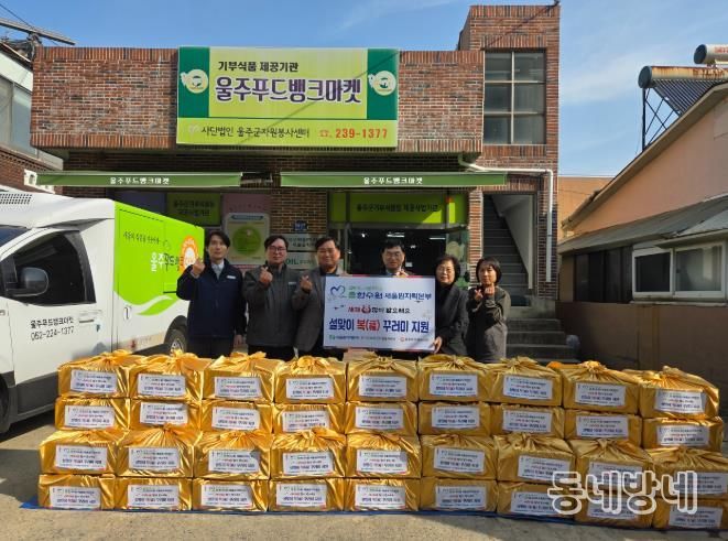 지원물품은 떡국, 과일, 장조림, 참기름, 강정 등 설 명절에 필요한 식료품으로 구성됐으며, 울주푸드뱅크마켓을 통해 대상 가정에 배분될 예정이다.