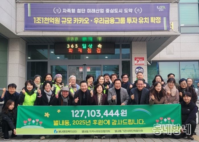동네방네 김형규 기자 | 남양주시는 별내행정복지센터에서 지난 한 해 동안 지역사회의 적극적인 참여로 모인 후원금과 후원물품이 총 1억 2,710만 원 규모로 집계됐다고 5일 밝혔다.