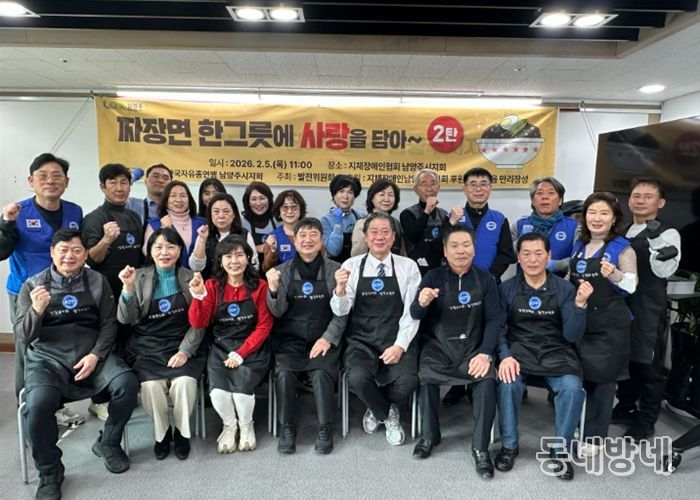 동네방네 김형규 기자 | 남양주시는 5일 한국자유총연맹 남양주시지회가 설 명절을 맞아 금곡동 복지회관에서 관내 지체장애인 100여 명을 대상으로 짜장면 나눔 행사를 진행했다고 밝혔다.