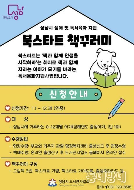 동네방네 김형규 기자 | 성남시는 올해 출생아 가정을 대상으로 ‘북스타트(Book Start) 책 꾸러미 지원사업’을 시행한다고 6일 밝혔다.