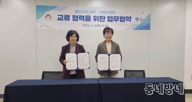 두 기관은 5일 버드내도서관에서 ‘신중년 맞춤형 라이프 솔루션 제공을 위한 업무협약’을 체결하고, 협력을 약속했다.