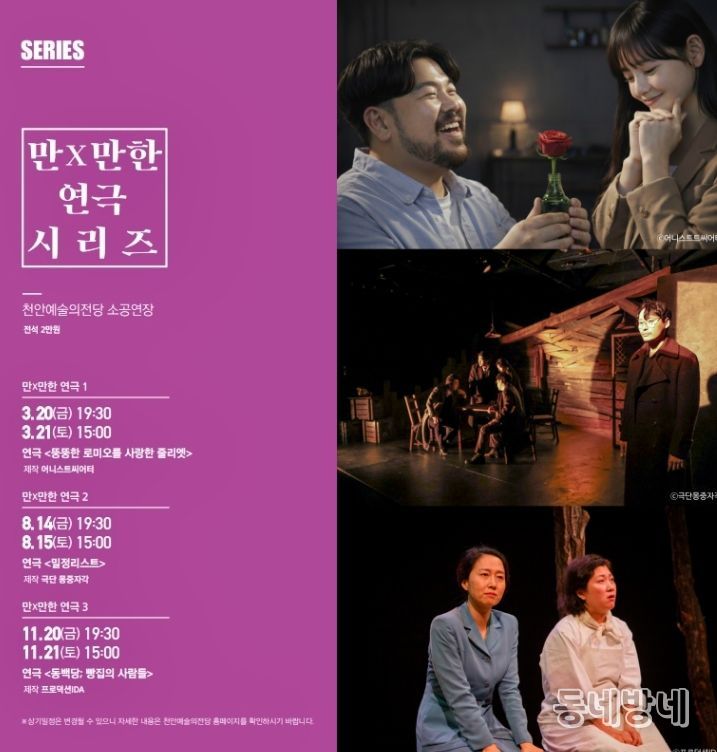 동네방네 김형규 기자 | 천안문화재단이 오는 10일부터 천안예술의전당 기획공연 ‘만X만한 연극 시리즈’의 티켓 예매를 시작한다.