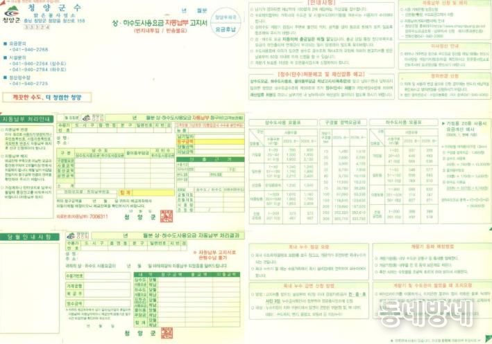 동네방네 김형규 기자 | 청양군이 군민의 소중한 개인정보를 보호하고 고지서 가독성을 높이기 위해 상·하수도 요금 고지서를 기존 지로형에서 ‘봉합형’으로 전면 개편한다.