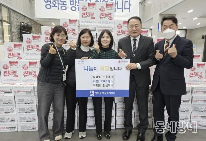 영화동 행정복지센터는 기부된 라면 200박스를 설 연휴 전까지 관내 저소득 가정, 독거노인 등 생활이 어려운 이웃에게 신속히 전달할 계획이다.