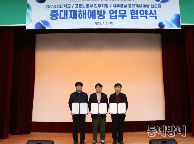 동네방네 김형규 기자 | 경상국립대학교 라이즈(RISE) 사업단은 2월 5일 사천시 근로자종합복지관에서 서부경남 중대재해 예방 협의체 및 고용노동부 진주지청과 업무협약을 체결했다.