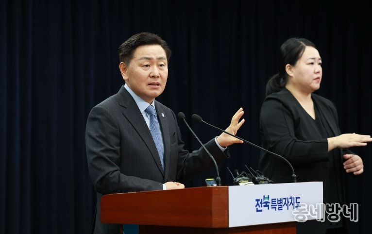 김관영 전북자치도지사는 9일 도청 브리핑룸에서 기자회견을 열고 “전북을 대한민국 AI로봇 실증·산업화 거점으로 육성하겠다”며 ‘AI로봇 산업 클러스터 조성계획’을 발표했다.