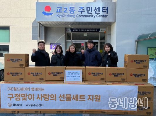 동네방네 김형규 기자 | 사단법인 월드쉐어 강원지부(지부장 김미라)는 9일 월요일 교2동 주민센터를 방문해 명절 종합선물세트 100개를 기탁했다.