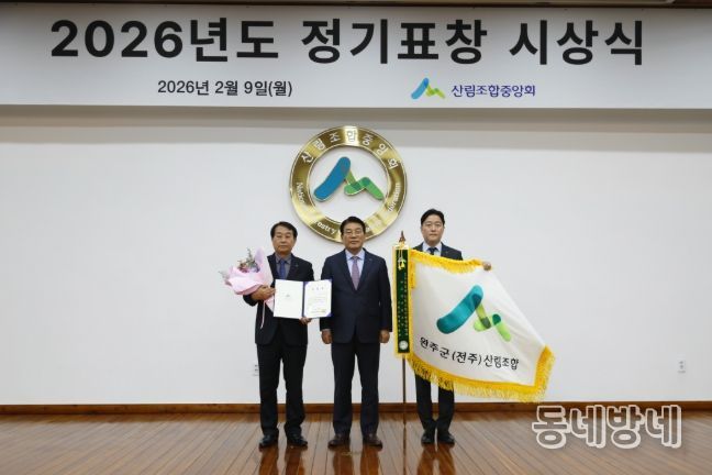 동네방네 김형규 기자 | 완주군(전주)산림조합(조합장 임필환)은 지난9일 서울 송파구 산림조합중앙회 청사에서 열린 ‘2026년 정기표창 시상식’에서 전국 산림조합 경영종합평가 분야 3위에 선정돼 수상의 영예를 안았다.