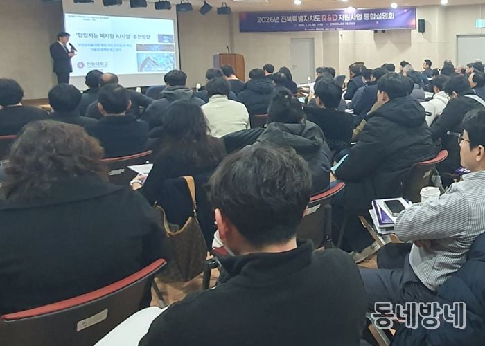 동네방네 김형규 기자 | 전북특별자치도와 (재)전북테크노파크는 10일 전북테크노파크 2층 대강당에서 ‘2026년 전북특별자치도 R&D 지원사업 통합설명회’를 개최했다.