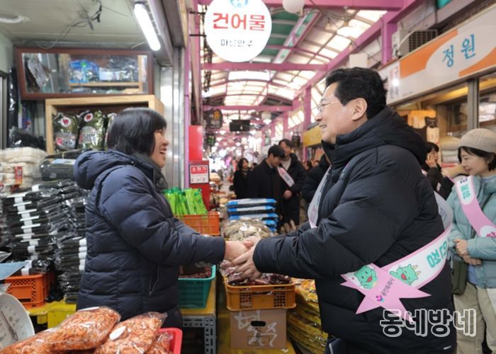 동네방네 김형규 기자 | 이상일 용인특례시장은 10일 설을 앞두고 용인중앙시장에서 장을 보며 상인과 시민에게 명절 인사를 하고, 수지구 성복동에 있는 장애인 복지시설 ‘해오름의 집’을 위문했다.