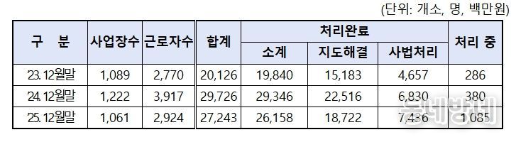 광주지방고용노동청에 따르면 지난해 12월 말 기준 도내 체불임금은 누계 272억원으로 2024년도 297억원 대비 8.4% 감소했다.