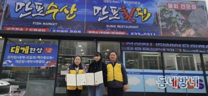협약에 따라 만포횟집은 매월 일정 금액을 온양6동 행복키움추진단에 정기 후원하게 되며, 후원금은 관내 저소득 가구와 복지 위기가구를 대상으로 생계·의료 지원, 정서 돌봄, 긴급 지원 등 맞춤형 복지사업에 사용될 예정이다.