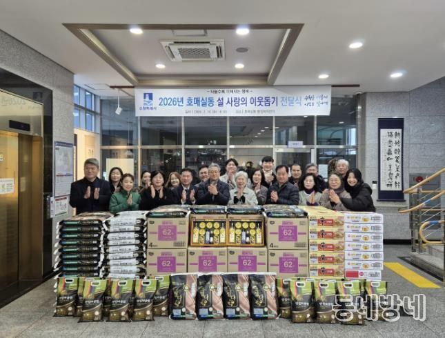 동네방네 김형규 기자 | 수원시 권선구 호매실동에서 2026년 설 명절을 맞이하여 이웃 돕기 전달식을 진행했다.