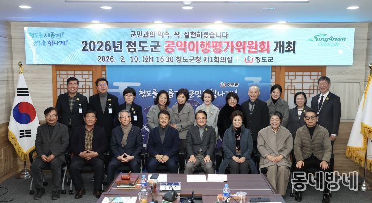 동네방네 김형규 기자 | 청도군은 지난 10일 군청 제1회의실에서 ‘2026년 청도군 공약이행평가위원회’를 개최하고 민선 8기 공약사항에 대한 추진 상황을 점검했다.
