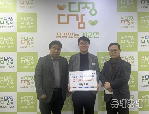 임병희 개군면장은 “지역사회를 위해 매년 따뜻한 나눔을 실천해 주신 계전교회 목사님과 신도 여러분께 깊이 감사드린다”며 “기탁해 주신 성금은 도움이 필요한 이웃들에게 소중히 전달될 수 있도록 하겠다”고 말했다.