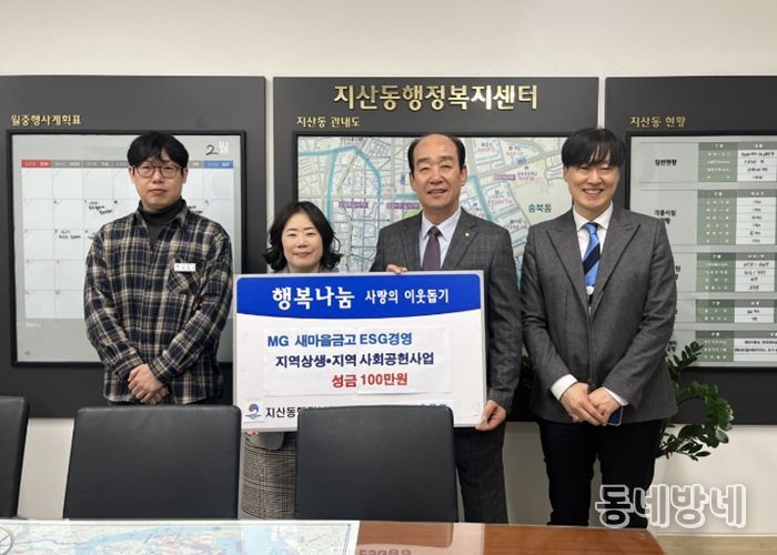 동네방네 김형규 기자 | 송탄새마을금고는 11일 평택시 지산동 행정복지센터를 방문해 관내 취약계층을 지원하기 위한 성금 100만 원을 기부했다.