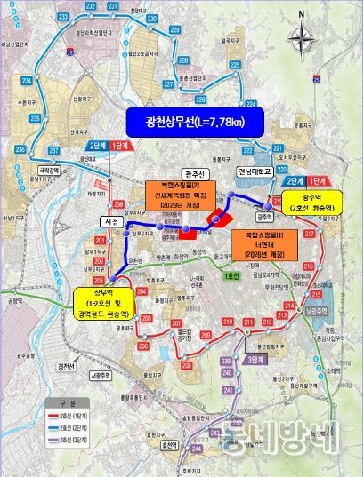 광천상무선은 광주종합버스터미널과 광주기아챔피언스필드 등 기존에 교통 접근성이 상대적으로 취약했던 지역을 촘촘히 연결한다. 또 오는 2028년 개장을 목표로 추진 중인 복합쇼핑몰 조성 등 광천권역 대규모 개발 사업과 연계돼 교통문제 해결과 지역에 활력을 불어넣을 것으로 기대된다.