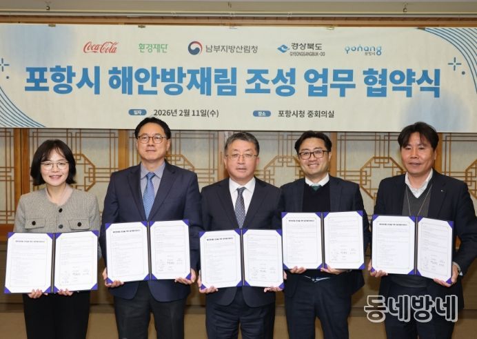 시는 11일 한국 코카-콜라, 환경재단, 남부지방산림청, 경상북도산림환경연구원과 ‘해안방재림 조성사업 업무협약(MOU)’을 체결하고 민·관 협력체계를 공식화했다.